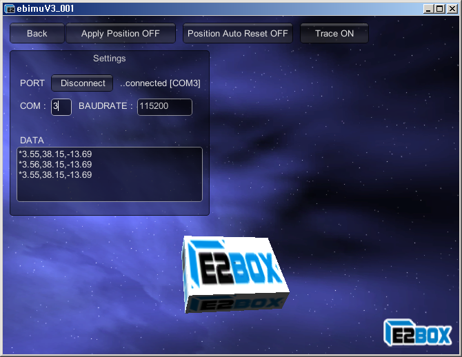 EBIMU V3 VIEWER프로그램은 ASCII모드만 지원합니다.